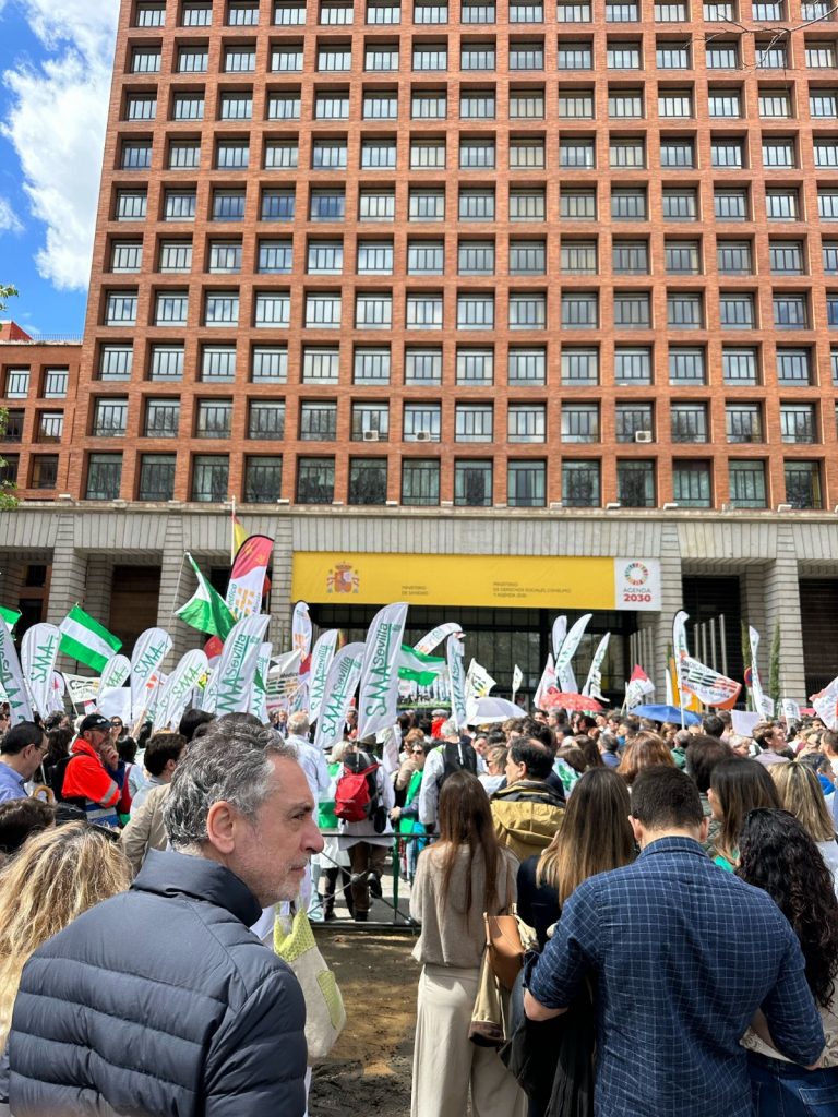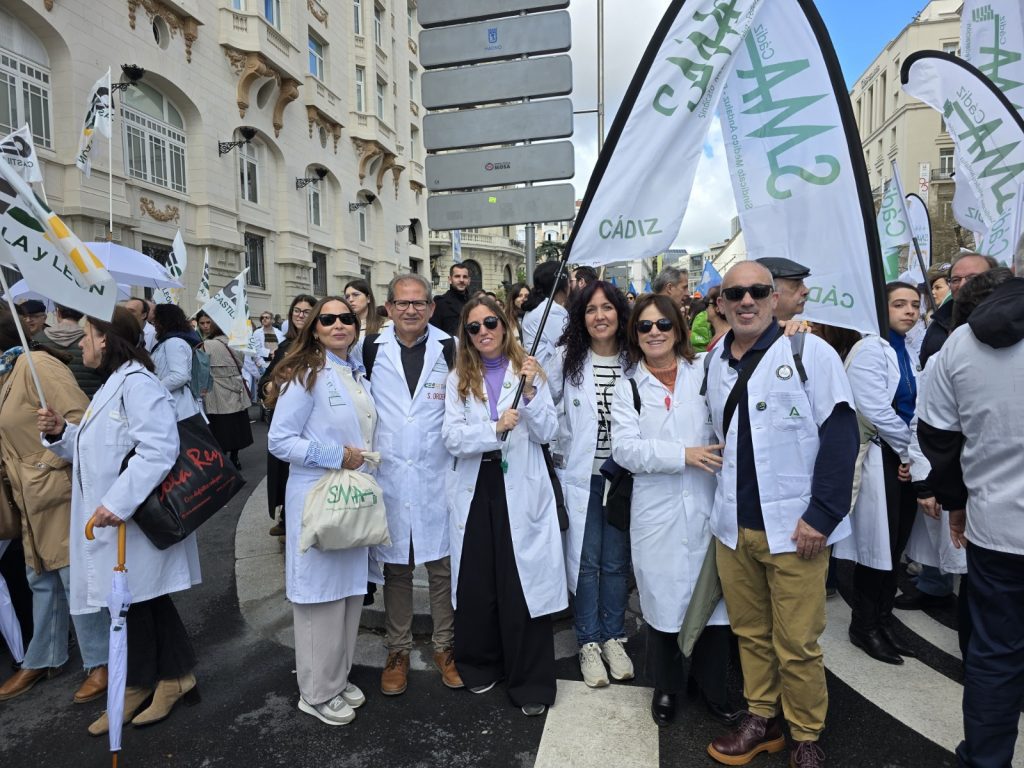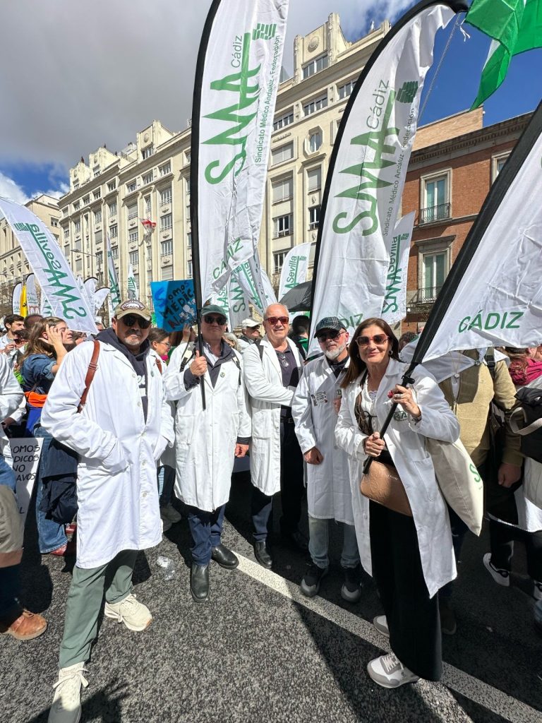 La colegiación médica gaditana tuvo una notoria representación en esta convocatoria, en la que el Colegio de Médicos contó con la presencia de la vocal de médicos de hospitales, Josefa Luisa Ortega, junto a responsables del SMA, de la Organización Médica Colegial (OMC), Consejo Estatal de Estudiantes de Medicina (CEEM), sociedades científicas y de otras organizaciones representativas del colectivo médico que, bajo el lema “Por un estatuto propio de la profesión médica y facultativa”, marcharon desde el Congreso de los Diputados hasta el Ministerio de Sanidad para mostrar cómo el borrador de la norma de Sanidad ha unido a la profesión en su “no” rotundo a un texto que empeora sus ya mermadas condiciones laborales.